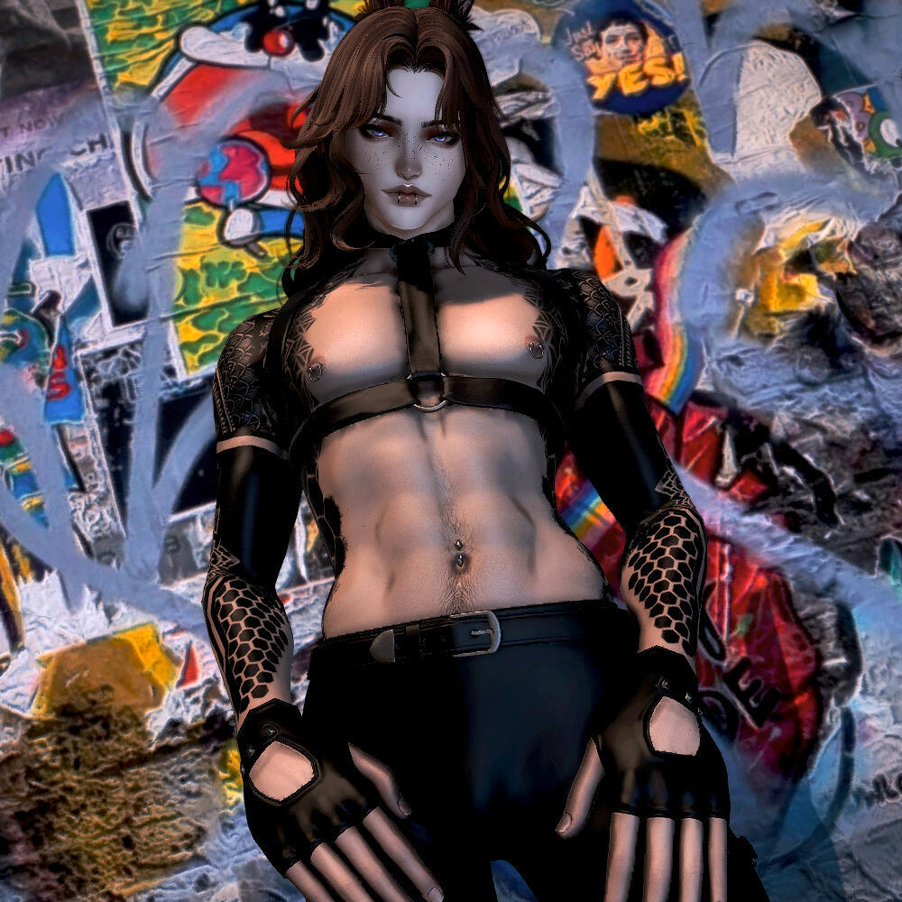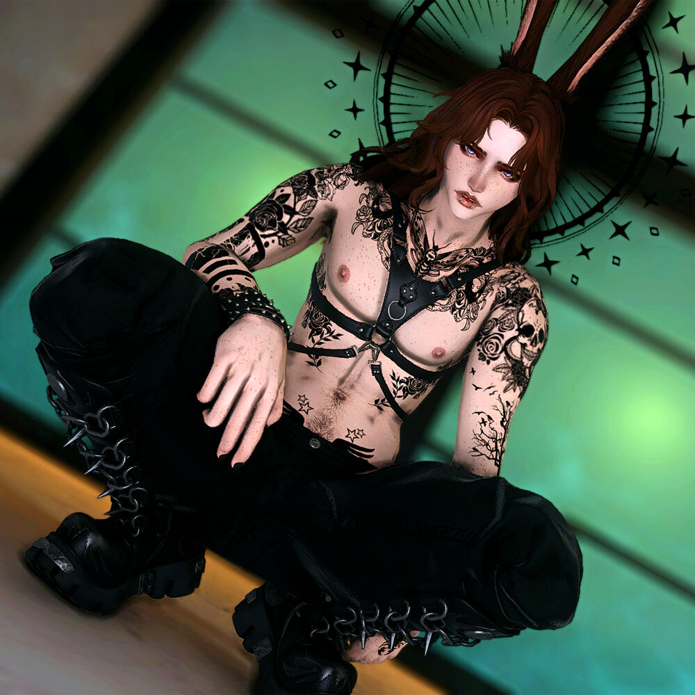 VIRTUES Kind. Protective. Brave. Curious. Honest. Strong. Generous. Friendly. Loyal. LIKES Restoring antique weapons. Nursing orphaned animals. Cooking. Nights out with friends. The idea of love. INVENTORY His axe, if he is working. A sturdy purse for gil. Mint leaves to chew. A pouch with snacks for wild creatures. Small notepad and pencil for drawing. PERSONALITY Boe is a well-rounded himbo: beefy, stupid, and nice. He doesn't know what is happening most of the time, but he's happy to be invited. Smiles brilliantly and often. OTHER A dusting of freckles on his body. Some tattoos. Snakebite piercings. Both nipples pierced. Some battle scars.